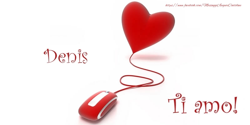 Denis Ti amo! | Cartolina con mouse e cuore | Cartoline d'amore