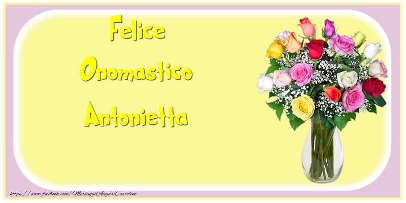 Felice Onomastico Antonietta | Cartolina con rose in vaso | Cartoline di onomastico