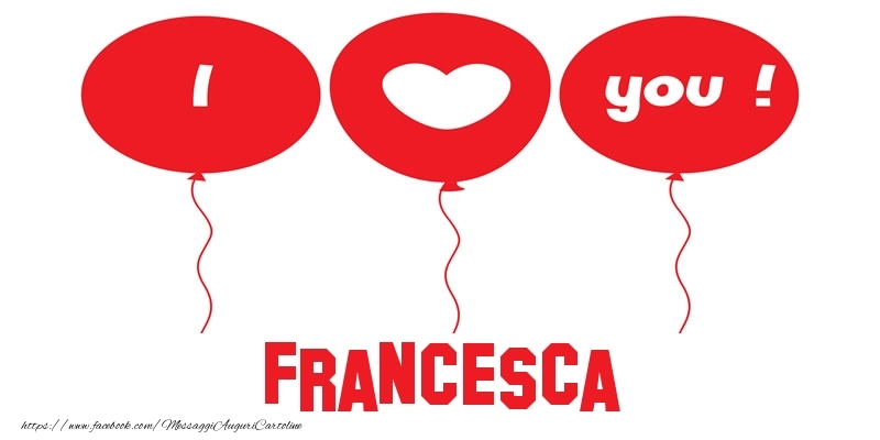 La cartolina d'amore con palloncini rossi con la scritta I LOVE YOU è stata creata con cura per trasmettere tutto l'affetto e la passione che caratterizzano questa relazione speciale. Con un design romantico, questo biglietto con il nome Francesca è il regalo perfetto per celebrare l'amore che condividi con il tuo partner. Questo biglietto d'amore con nome Francesca può essere scaricata gratis o inviare tramite Whatsapp, Facebook, Twitter, Pinterest. Immagine d'amore con palloncini rossi con la scritta I LOVE YOU e dimensioni 800px x 400px.