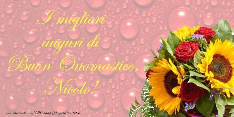 Scopri questa cartolina con girasoli e rose unica e personalizzata per la festa dell'onomastico e preparati a condividere un momento di gioia e felicità con il destinatario. Che tu stia inviando il messaggio a distanza o desideri sorprendere la persona amata, questo biglietto di auguri con il nome Nicolo renderà la festa dell'onomastico davvero speciale e memorabile. Questo biglietto di auguri di onomastico con nome Nicolo può essere scaricata gratis o inviare tramite Whatsapp, Facebook, Twitter, Pinterest. Immagine di buon onomastico con girasoli e rose e dimensioni 800px x 400px.