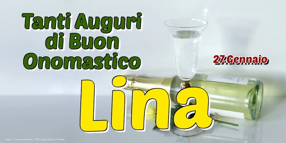 Celebra l’onomastico di Lina (27 Gennaio - Sant' Angela Merici) con biglietti augurali unici! Scegli tra immagini speciali e messaggi affettuosi per inviare i tuoi migliori auguri alle persone care.