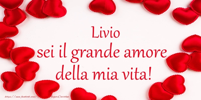 Livio sei il grande amore della mia vita! | Cartolina con bordo di cuori rossi | Cartoline d'amore