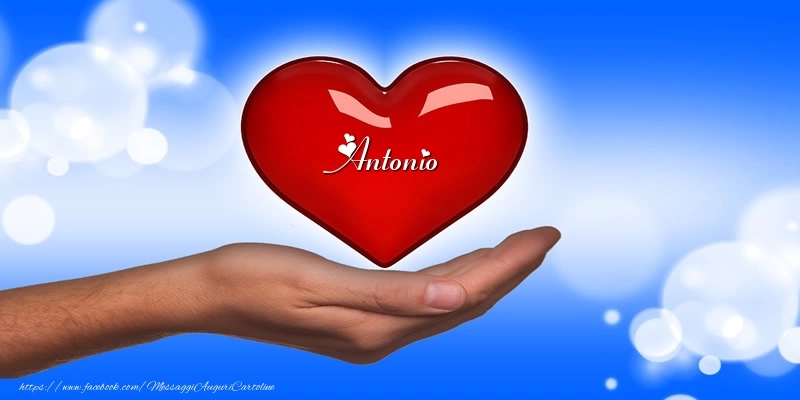 La cartolina d'amore con il cuore nel palmo di una persona è stata creata con cura per trasmettere tutto l'affetto e la passione che caratterizzano questa relazione speciale. Con un design romantico, questo biglietto con il nome Antonio è il regalo perfetto per celebrare l'amore che condividi con il tuo partner. Questo biglietto d'amore con nome Antonio può essere scaricata gratis o inviare tramite Whatsapp, Facebook, Twitter, Pinterest. Immagine d'amore con il cuore nel palmo di una persona e dimensioni 800px x 400px.
