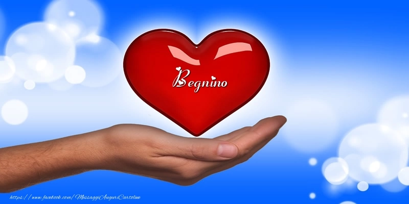 Nome nel cuore Begnino | Cartolina con il cuore nel palmo di una persona | Cartoline d'amore