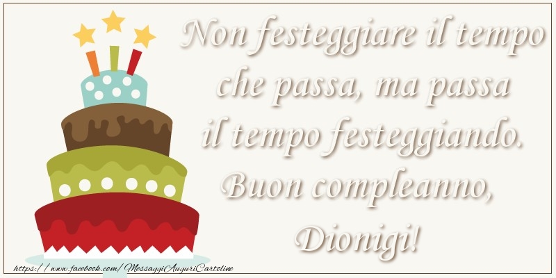 Non festeggiare il tempo che passa, ma passa il tempo festiggiando. Buon compleano, Dionigi! | Cartolina con torta su sfondo grigio | Cartoline di compleanno