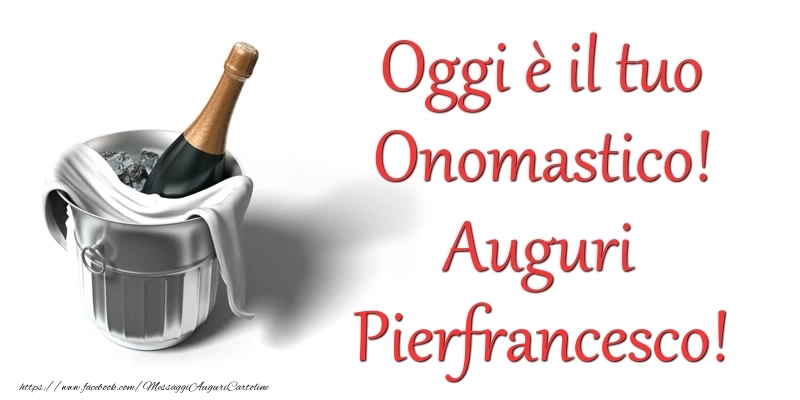 Cartolina con nome Pierfrancesco di onomastico con champagne in ghiaccio per i festeggiati e frase di buon onomastico Oggi e il tuo Onomastico! Auguri Pierfrancesco.