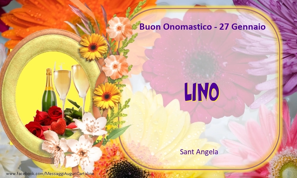 Scopri questa cartolina con champagne su sfondo floreale unica e personalizzata per la festa dell'onomastico e preparati a condividere un momento di gioia e felicità con il destinatario. Che tu stia inviando il messaggio a distanza o desideri sorprendere la persona amata, questo biglietto di auguri con il nome Lino renderà la festa dell'onomastico davvero speciale e memorabile. Questo biglietto di auguri di onomastico con nome Lino può essere scaricata gratis o inviare tramite Whatsapp, Facebook, Twitter, Pinterest. Immagine di buon onomastico con champagne su sfondo floreale e dimensioni 1000px x 600px.
