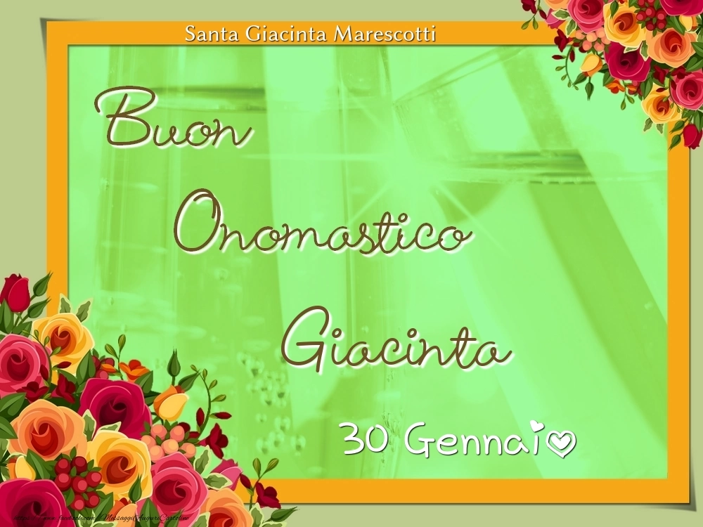 Santa Giacinta Marescotti Buon Onomastico, Giacinta! 30 Gennaio | Cartolina con rose per i festeggiati | Cartoline di onomastico