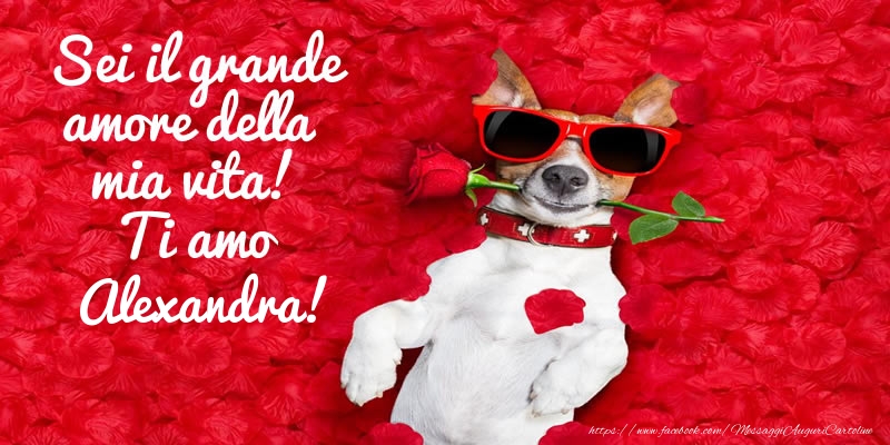 Sei il grande amore della mia vita! Ti amo Alexandra! | Cartolina con cane divertente con rosa in bocca | Cartoline d'amore