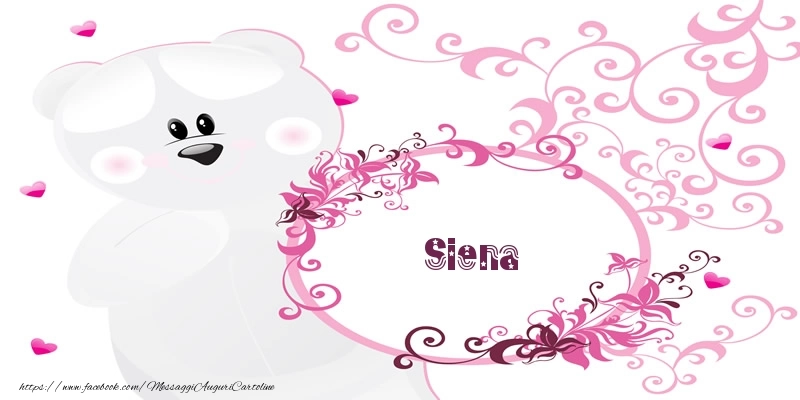 La cartolina d'amore con orso bianco e cuori è stata creata con cura per trasmettere tutto l'affetto e la passione che caratterizzano questa relazione speciale. Con un design romantico, questo biglietto con il nome Siena è il regalo perfetto per celebrare l'amore che condividi con il tuo partner. Questo biglietto d'amore con nome Siena può essere scaricata gratis o inviare tramite Whatsapp, Facebook, Twitter, Pinterest. Immagine d'amore con orso bianco e cuori e dimensioni 800px x 400px.