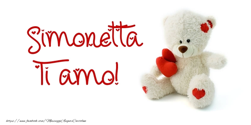 Simonetta Ti amo! | Cartolina con orsetto con cuori rossi su sfondo bianco | Cartoline d'amore
