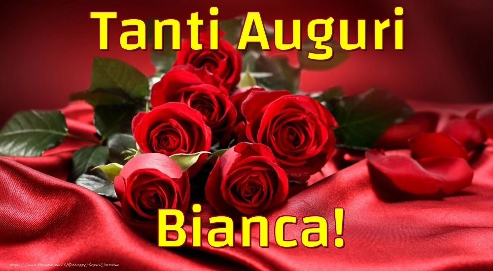 Questa cartolina d'auguri personalizzato con rose rosse è decorato con un design festivo e pieno di colore, perfetto per riflettere la gioia e l'allegria di un compleanno. Il nome del destinatario, Bianca, è il fulcro di questo biglietto, inciso con eleganza e raffinatezza per farlo sentire davvero speciale nel giorno del suo compleanno. Questo biglietto di auguri con il nome Bianca può essere scaricata gratis o inviare tramite Whatsapp, Facebook, Twitter, Pinterest. Immagine di auguri buon compleanno con rose rosse e dimensioni 1000px x 550px.