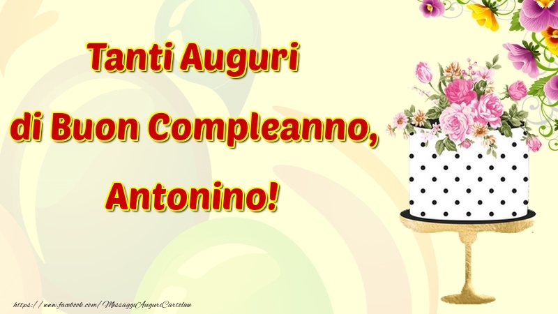 Tanti Auguri di Buon Compleanno, Antonino | Cartolina con fiori e torta | Cartoline di compleanno