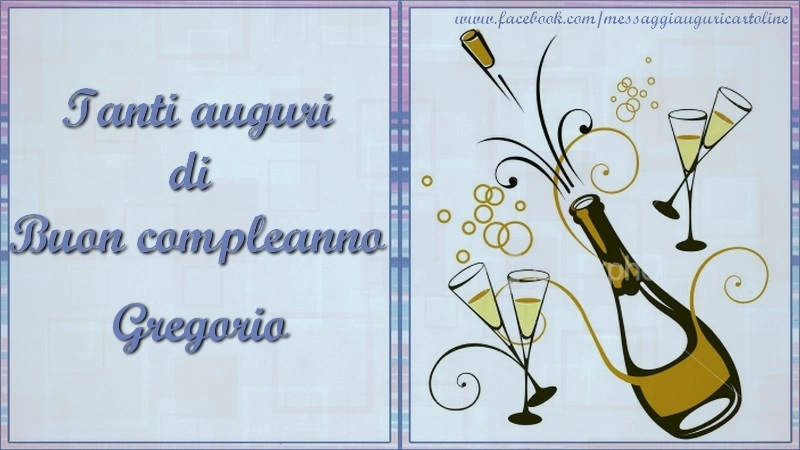 Con questa cartolina con disegno con champagne e bicchieri, riuscirai a portare una gioia immensa al festeggiato nel giorno del suo compleanno. È un gesto piccolo, ma pieno d'affetto, che rimarrà per sempre nella sua memoria. Il nome Gregorio è il fulcro di questo biglietto, inciso con eleganza e raffinatezza per far sentire davvero speciale il festeggiato nel giorno del suo compleanno. Questo biglietto di auguri di compleanno con il nome Gregorio può essere scaricata gratis o inviare tramite Whatsapp, Facebook, Twitter, Pinterest. Immagine di buon compleanno con disegno con champagne e bicchieri e dimensioni 800px x 450px.
