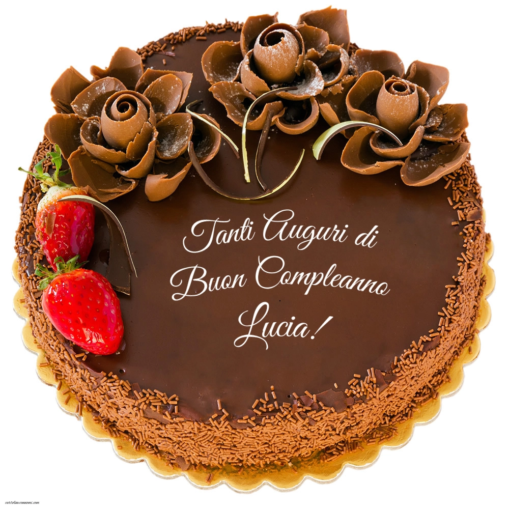 Tanti Auguri di Buon Compleanno Lucia! | Cartolina con torta al cioccolato con fragole | Cartoline di compleanno