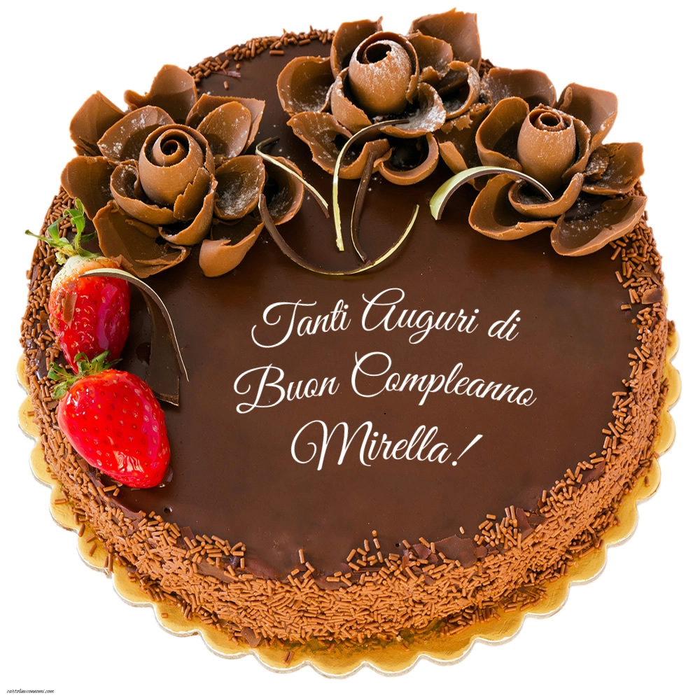 Tanti Auguri di Buon Compleanno Mirella! | Cartolina con torta al cioccolato con fragole | Cartoline di compleanno