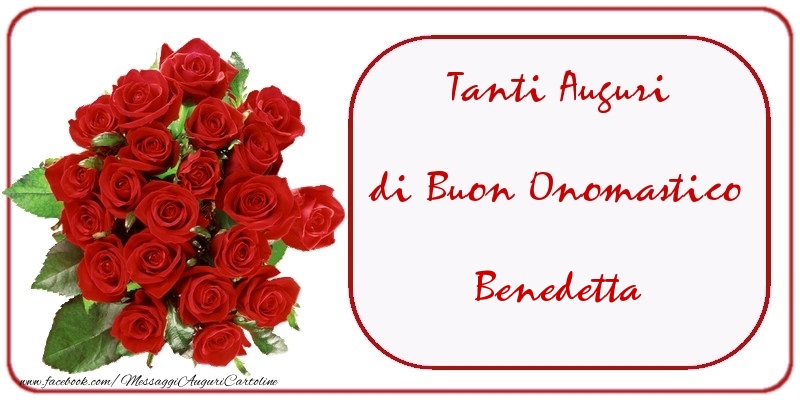 Tanti Auguri di Buon Onomastico Benedetta | Cartolina con bouquet di rose rosse per ragazze e donne | Cartoline di onomastico