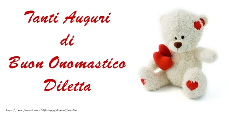Tanti Auguri di Buon Onomastico Diletta | Cartolina con orsacchiotto con cuore | Cartoline di onomastico