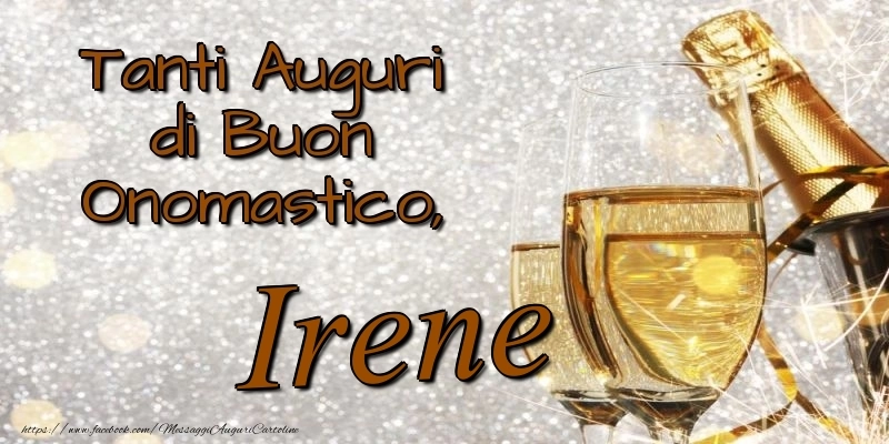 Scopri questa cartolina con champagne per signori o signore unica e personalizzata per la festa dell'onomastico e preparati a condividere un momento di gioia e felicità con il destinatario. Che tu stia inviando il messaggio a distanza o desideri sorprendere la persona amata, questo biglietto di auguri con il nome Irene renderà la festa dell'onomastico davvero speciale e memorabile. Questo biglietto di auguri di onomastico con nome Irene può essere scaricata gratis o inviare tramite Whatsapp, Facebook, Twitter, Pinterest. Immagine di buon onomastico con champagne per signori o signore e dimensioni 800px x 400px.