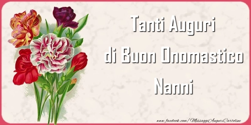 Scopri questa cartolina con mazzo di fiori unica e personalizzata per la festa dell'onomastico e preparati a condividere un momento di gioia e felicità con il destinatario. Che tu stia inviando il messaggio a distanza o desideri sorprendere la persona amata, questo biglietto di auguri con il nome Nanni renderà la festa dell'onomastico davvero speciale e memorabile. Questo biglietto di auguri di onomastico con nome Nanni può essere scaricata gratis o inviare tramite Whatsapp, Facebook, Twitter, Pinterest. Immagine di buon onomastico con mazzo di fiori e dimensioni 800px x 400px.