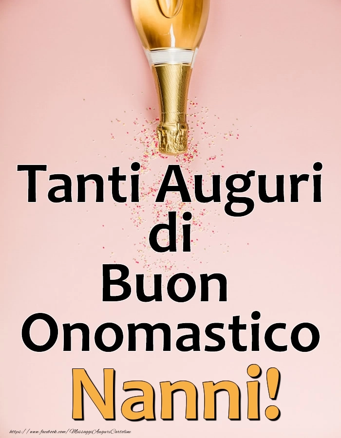 Scopri questa cartolina con champagne e coriandoli unica e personalizzata per la festa dell'onomastico e preparati a condividere un momento di gioia e felicità con il destinatario. Che tu stia inviando il messaggio a distanza o desideri sorprendere la persona amata, questo biglietto di auguri con il nome Nanni renderà la festa dell'onomastico davvero speciale e memorabile. Questo biglietto di auguri di onomastico con nome Nanni può essere scaricata gratis o inviare tramite Whatsapp, Facebook, Twitter, Pinterest. Immagine di buon onomastico con champagne e coriandoli e dimensioni 700px x 900px.