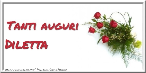 Questa cartolina d'auguri personalizzato con bouquet con cinque rose rosse è decorato con un design festivo e pieno di colore, perfetto per riflettere la gioia e l'allegria di un compleanno. Il nome del destinatario, Diletta, è il fulcro di questo biglietto, inciso con eleganza e raffinatezza per farlo sentire davvero speciale nel giorno del suo compleanno. Questo biglietto di auguri con il nome Diletta può essere scaricata gratis o inviare tramite Whatsapp, Facebook, Twitter, Pinterest. Immagine di auguri buon compleanno con bouquet con cinque rose rosse e dimensioni 600px x 300px.