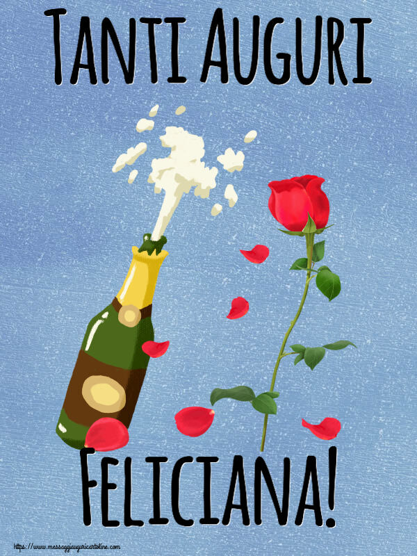 Tanti Auguri Feliciana! | Cartolina con disegno con uno champagne e una rosa | Cartoline di auguri