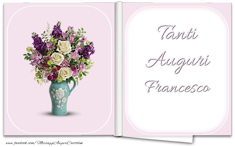 Tanti Auguri Francesco | Cartolina con bouquet di fiori in vaso | Cartoline di auguri