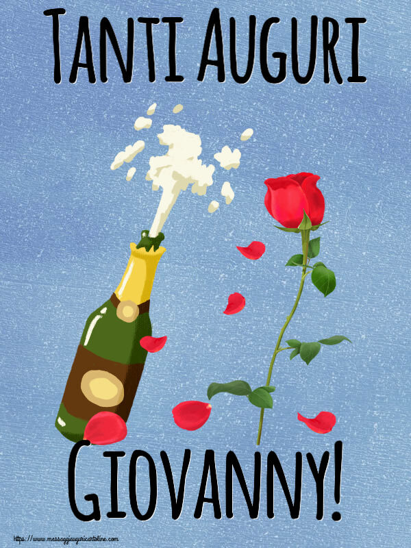 Tanti Auguri Giovanny! | Cartolina con disegno con uno champagne e una rosa | Cartoline di auguri