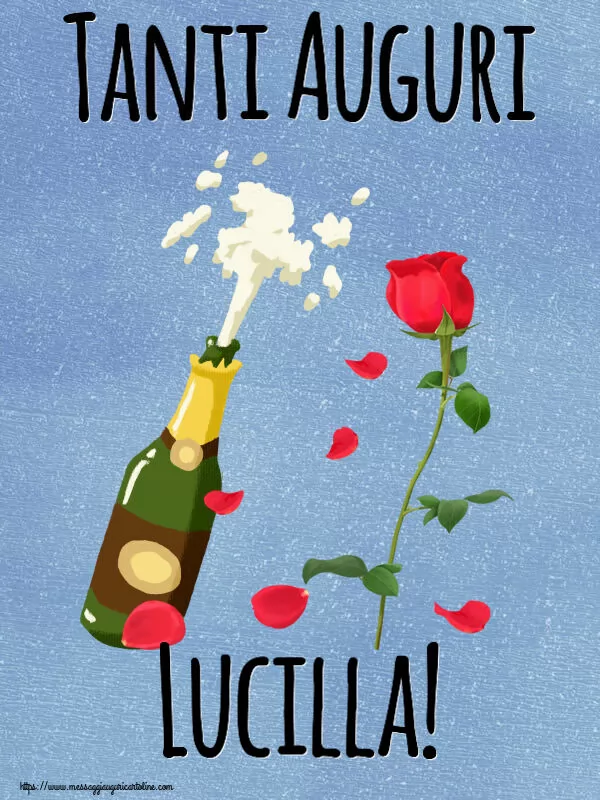 Tanti Auguri Lucilla! | Cartolina con disegno con uno champagne e una rosa | Cartoline di auguri