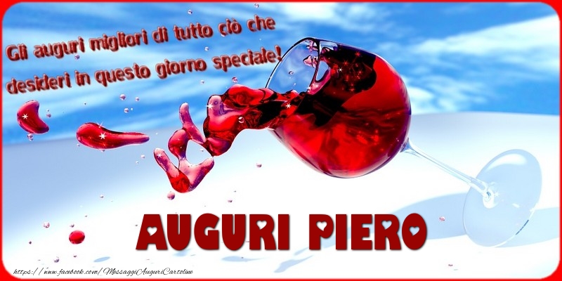 Tanti auguri  Piero | Cartolina con bicchiere di vino rosso | Cartoline di auguri