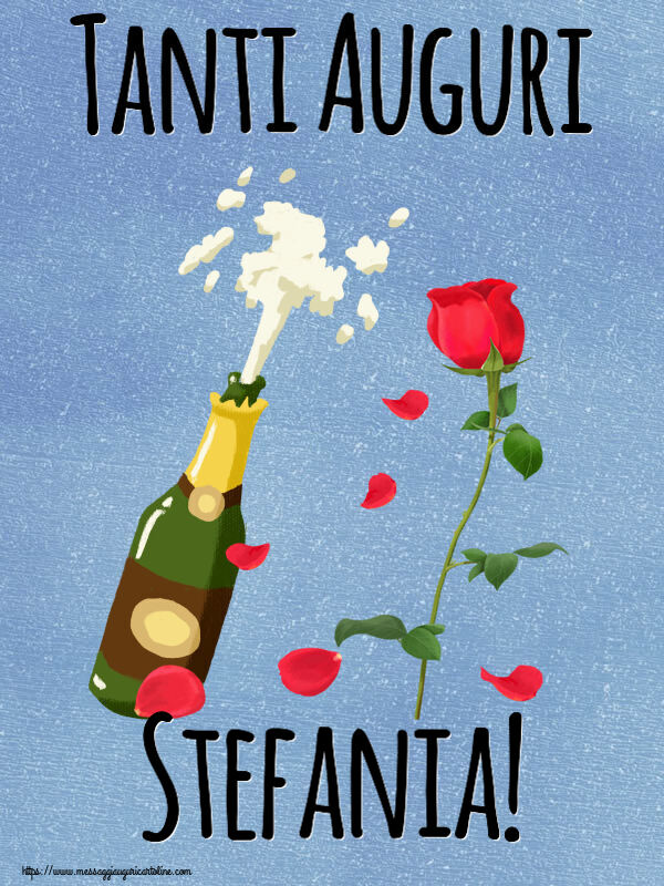 Tanti Auguri Stefania! | Cartolina con disegno con uno champagne e una rosa | Cartoline di auguri