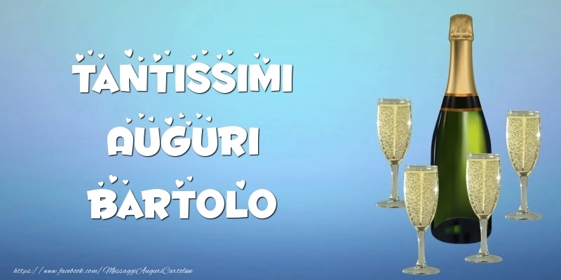 Questa cartolina d'auguri personalizzato con champagne e 4 bicchieri su sfondo blu è decorato con un design festivo e pieno di colore, perfetto per riflettere la gioia e l'allegria di un compleanno. Il nome del destinatario, Bartolo, è il fulcro di questo biglietto, inciso con eleganza e raffinatezza per farlo sentire davvero speciale nel giorno del suo compleanno. Questo biglietto di auguri con il nome Bartolo può essere scaricata gratis o inviare tramite Whatsapp, Facebook, Twitter, Pinterest. Immagine di auguri buon compleanno con champagne e 4 bicchieri su sfondo blu e dimensioni 800px x 400px.