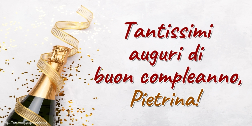Tantissimi auguri di buon compleanno, Pietrina! | Cartolina con champagne e coriandoli per un'amico speciale | Cartoline di auguri