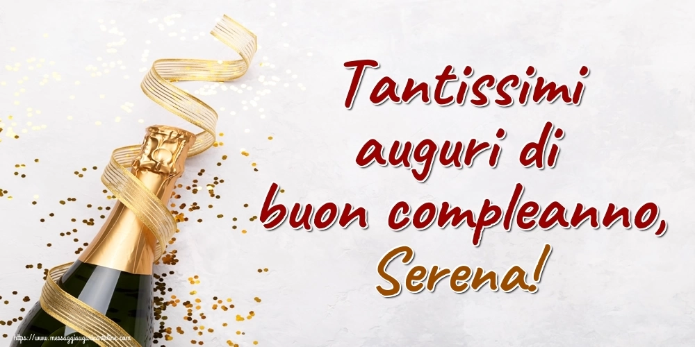 Questa cartolina d'auguri personalizzato con champagne e coriandoli per un'amico speciale è decorato con un design festivo e pieno di colore, perfetto per riflettere la gioia e l'allegria di un compleanno. Il nome del destinatario, Serena, è il fulcro di questo biglietto, inciso con eleganza e raffinatezza per farlo sentire davvero speciale nel giorno del suo compleanno. Questo biglietto di auguri con il nome Serena può essere scaricata gratis o inviare tramite Whatsapp, Facebook, Twitter, Pinterest. Immagine di auguri buon compleanno con champagne e coriandoli per un'amico speciale e dimensioni 1000px x 500px.