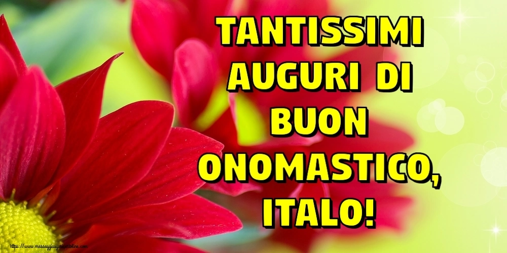 Scopri questa cartolina con fiori e scritte gialle unica e personalizzata per la festa dell'onomastico e preparati a condividere un momento di gioia e felicità con il destinatario. Che tu stia inviando il messaggio a distanza o desideri sorprendere la persona amata, questo biglietto di auguri con il nome Italo renderà la festa dell'onomastico davvero speciale e memorabile. Questo biglietto di auguri di onomastico con nome Italo può essere scaricata gratis o inviare tramite Whatsapp, Facebook, Twitter, Pinterest. Immagine di buon onomastico con fiori e scritte gialle e dimensioni 1000px x 500px.