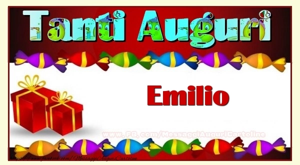 Questa cartolina d'auguri personalizzato con candy e regali è decorato con un design festivo e pieno di colore, perfetto per riflettere la gioia e l'allegria di un compleanno. Il nome del destinatario, Emilio, è il fulcro di questo biglietto, inciso con eleganza e raffinatezza per farlo sentire davvero speciale nel giorno del suo compleanno. Questo biglietto di auguri con il nome Emilio può essere scaricata gratis o inviare tramite Whatsapp, Facebook, Twitter, Pinterest. Immagine di auguri buon compleanno con candy e regali e dimensioni 600px x 330px.