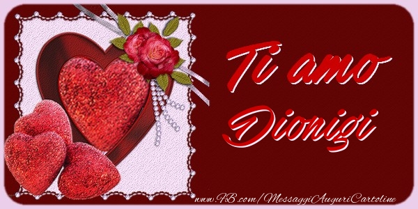Ti amo Dionigi | Cartolina con cuore e rose | Cartoline d'amore