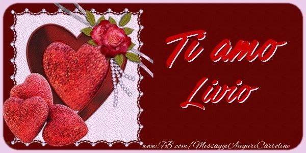 Ti amo Livio | Cartolina con cuore e rose | Cartoline d'amore