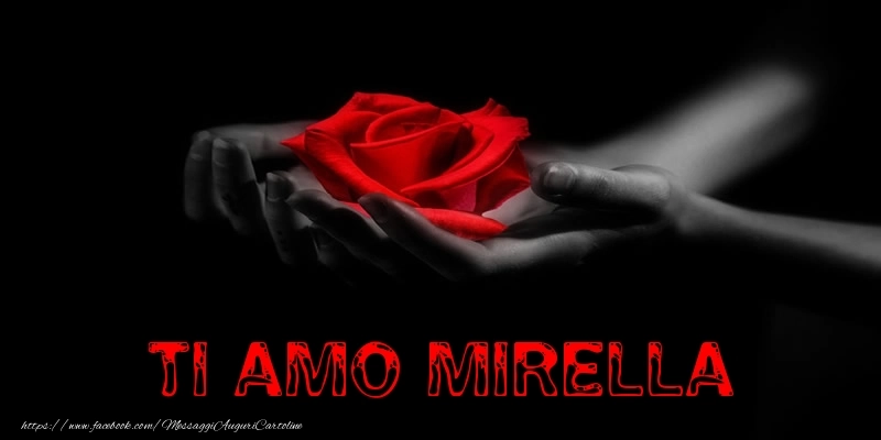 Ti Amo Mirella | Cartolina con rosa su sfondo nero per una persona speciale | Cartoline d'amore