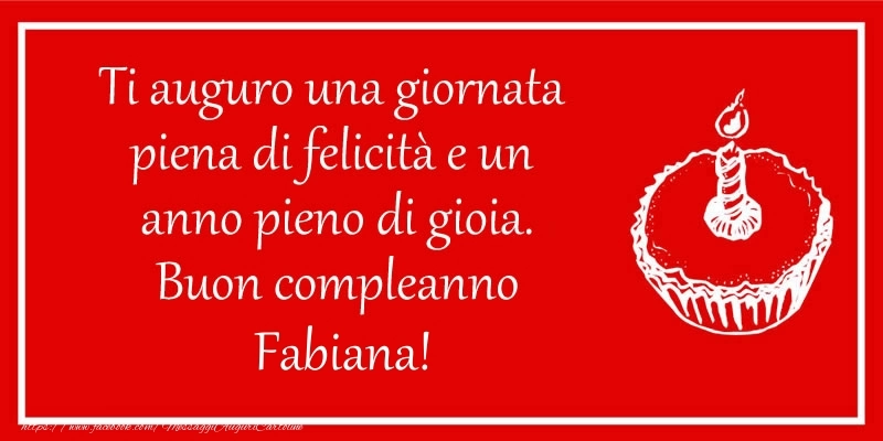 Ti auguro una giornata  piena di felicità e un  anno pieno di gioia. Buon compleanno Fabiana! | Cartolina con torta su sfondo rosso | Cartoline di compleanno