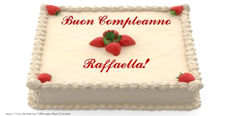 Buon Compleanno Raffaella! | Cartolina con torta rettangolare con fragole | Cartoline di compleanno