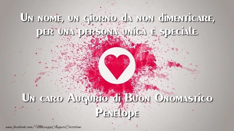 Scopri questa cartolina con cuore unica e personalizzata per la festa dell'onomastico e preparati a condividere un momento di gioia e felicità con il destinatario. Che tu stia inviando il messaggio a distanza o desideri sorprendere la persona amata, questo biglietto di auguri con il nome Penelope renderà la festa dell'onomastico davvero speciale e memorabile. Questo biglietto di auguri di onomastico con nome Penelope può essere scaricata gratis o inviare tramite Whatsapp, Facebook, Twitter, Pinterest. Immagine di buon onomastico con cuore e dimensioni 800px x 450px.