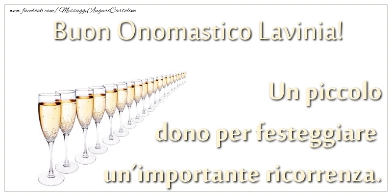 Cartolina con nome Lavinia di onomastico con molti bicchieri di champagne e frase di buon onomastico Un piccolo dono per festeggiare un importante ricorrenza. Buon onomastico Lavinia!.