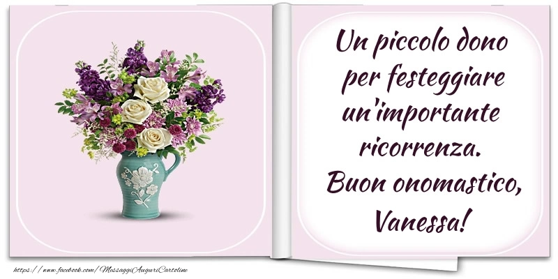 Un piccolo dono  per festeggiare un'importante  ricorrenza.  Buon onomastico, Vanessa! | Cartolina con bouquet di fiori per donne | Cartoline di onomastico
