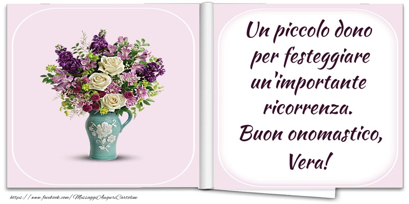 Un piccolo dono  per festeggiare un'importante  ricorrenza.  Buon onomastico, Vera! | Cartolina con bouquet di fiori per donne | Cartoline di onomastico