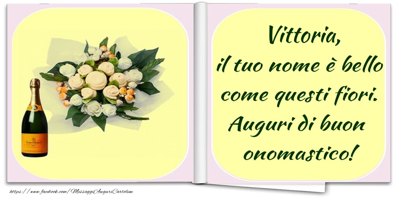 Vittoria, il tuo nome è bello come questi fiori. Auguri di buon  onomastico! | Cartolina con champagne e fiori per donne | Cartoline di onomastico
